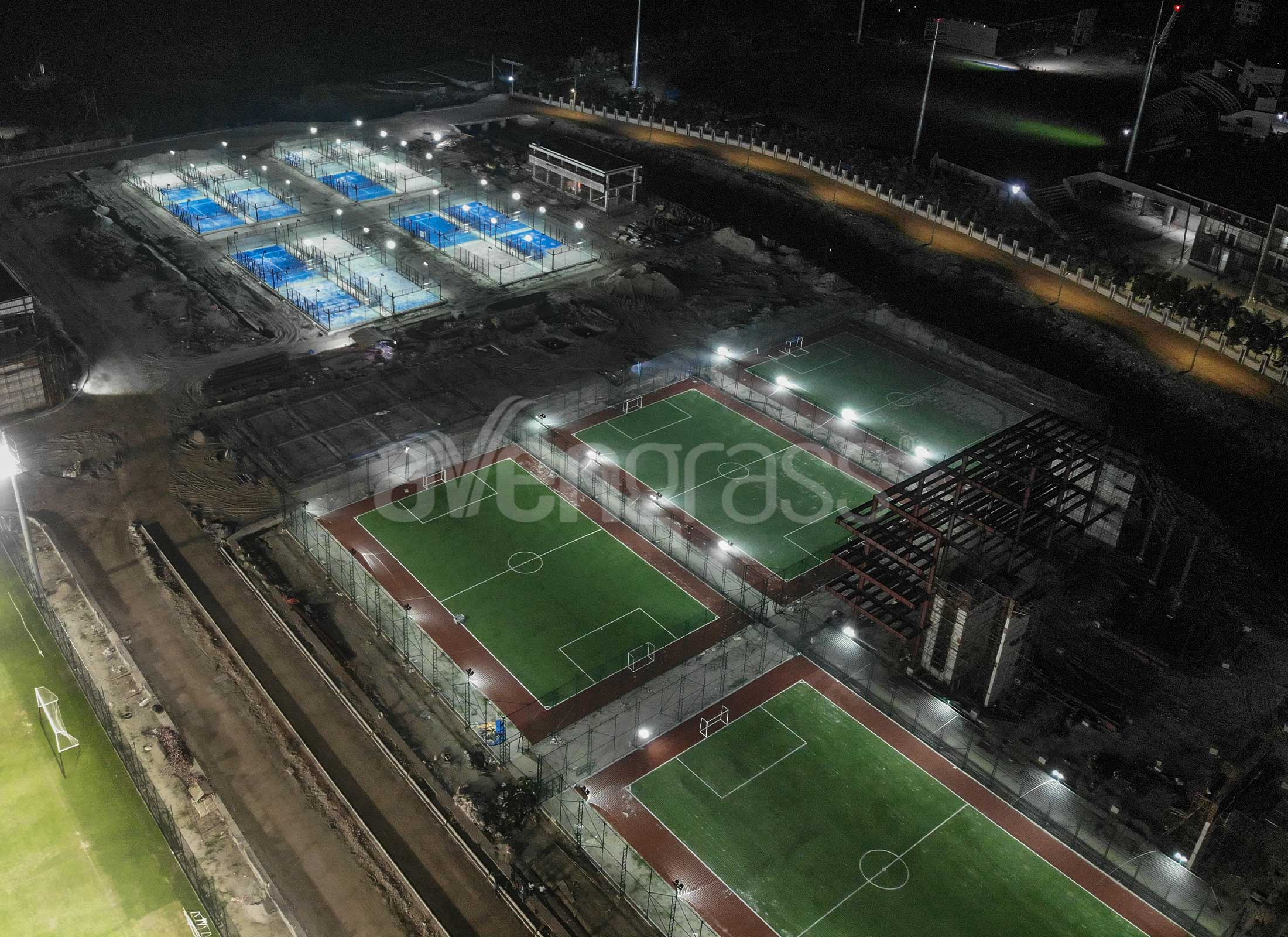 - تم تصميم قواعد التربة الموجودة أسفل الملاعب لتصريف المياه بشكل فعال، مما يضمن استمرار اللعب حتى في الظروف الجوية السيئة.