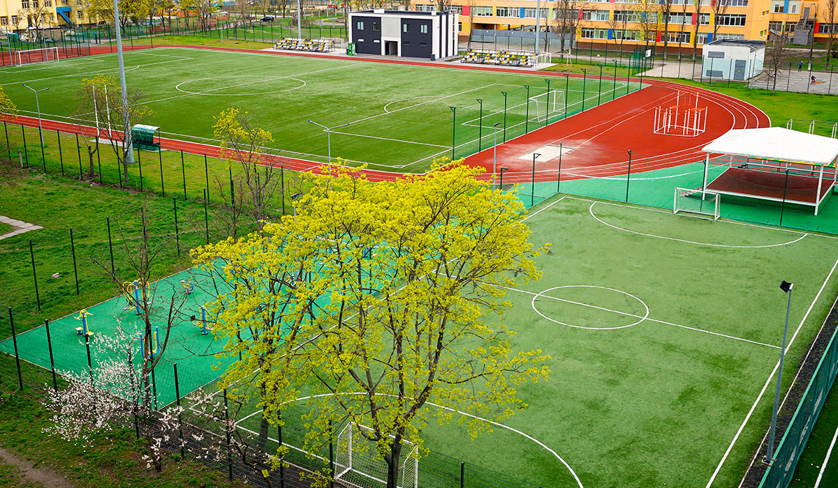 - زراعة العشب الطبيعي: يتم زراعة المنطقة ببذور العشب الطبيعي الخاصة، مما يضمن أن العشب الهجين يتمتع بمظهر طبيعي.